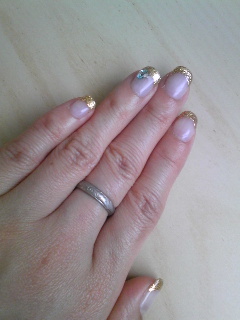 大学の後輩Yくんのウエディングパーティの2次会にお呼ばれしているので、ゴールドのフレンチネイルにしてみました〜。ストーンも入れたりして。