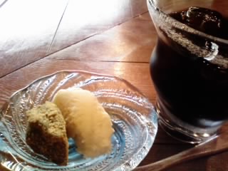 コーヒーを頼むとデザートも。ガラスの器が涼しげ〜♪
