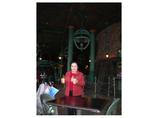 もうご年配なので乗り物を控えて、ショーなどを楽しもうと思っていたのにもかかわらず、ノリノリでインディジョーンズとかに乗ってしまった。元気だなぁママ。そして彼女が「どうしても乗りたい〜」と騒いでいたのが、この大きな客船コロンブス号。