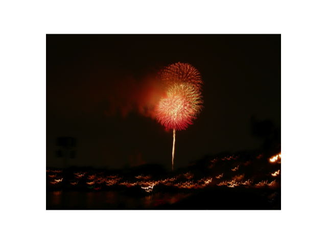 最後は夕食を食べて、ちょうど外に出ると花火が上がっていた。