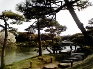 でもキレイでしょ〜。ひろーい池があって、ちゃんと植木も手入れしてあり、カモやコイ、カメなど生き物もゆったりとくつろいでます。写真はたまたま無人だけど、観光客もけっこう来てました。
