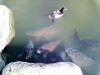立ち止まるとコイは、「くれくれ」と口を開けてよってきます。君たちがオレンジに昇格したらあげよう。