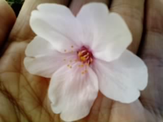 なめてみるとやっぱりあまーい! そっかぁ、雀ちゃんたちは食べて桜を楽しむのね。