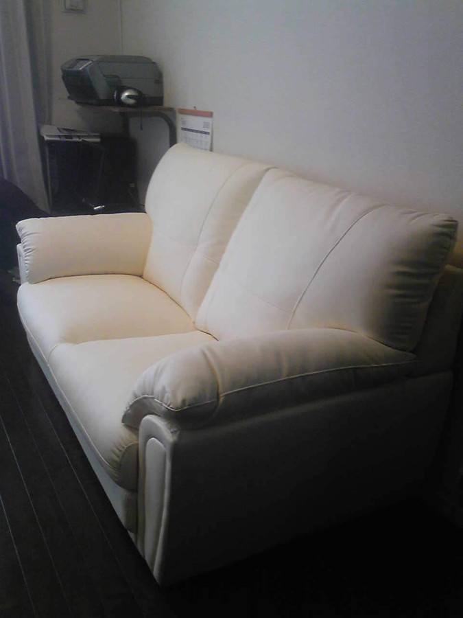 羽毛が入っている背もたれフワフワのソファ。毎日座ってくつろいじゃお♪